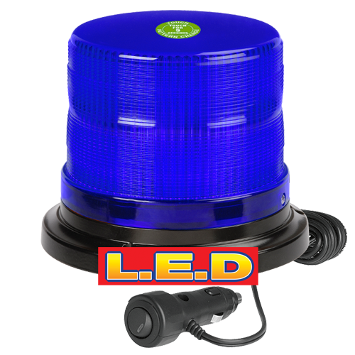 12/24 Volt Pulse High Output L.E.D Strobe/Rotator Light Blue with 2 Selectable Flash Patterns Magnetic Base and Cigarette Lighter Plug with Switch
