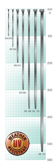 56314 Narva Extra Heavy Duty Black Cable Ties U.V. Weather Resistant - 9.0 x 530