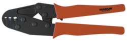 A heavy-duty ratchet tool with long handles for better leverage when crimping. Suitable for red, blue, and yellow insulated terminals.