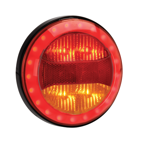 9-33 Volt L.E.D Rear Stop and Direction Indicator Lamp with Red L.E.D Tail Ring, In-built Retro Reflector, 0.5m Hard-Wired Sheathed Cable and Black Base