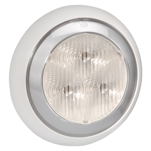 9-33 Volt L.E.D Reverse Lamp (White) with Silver Satin Ring, 0.5m Hard-Wired Sheathed Cable and Contoured 150mm White Base